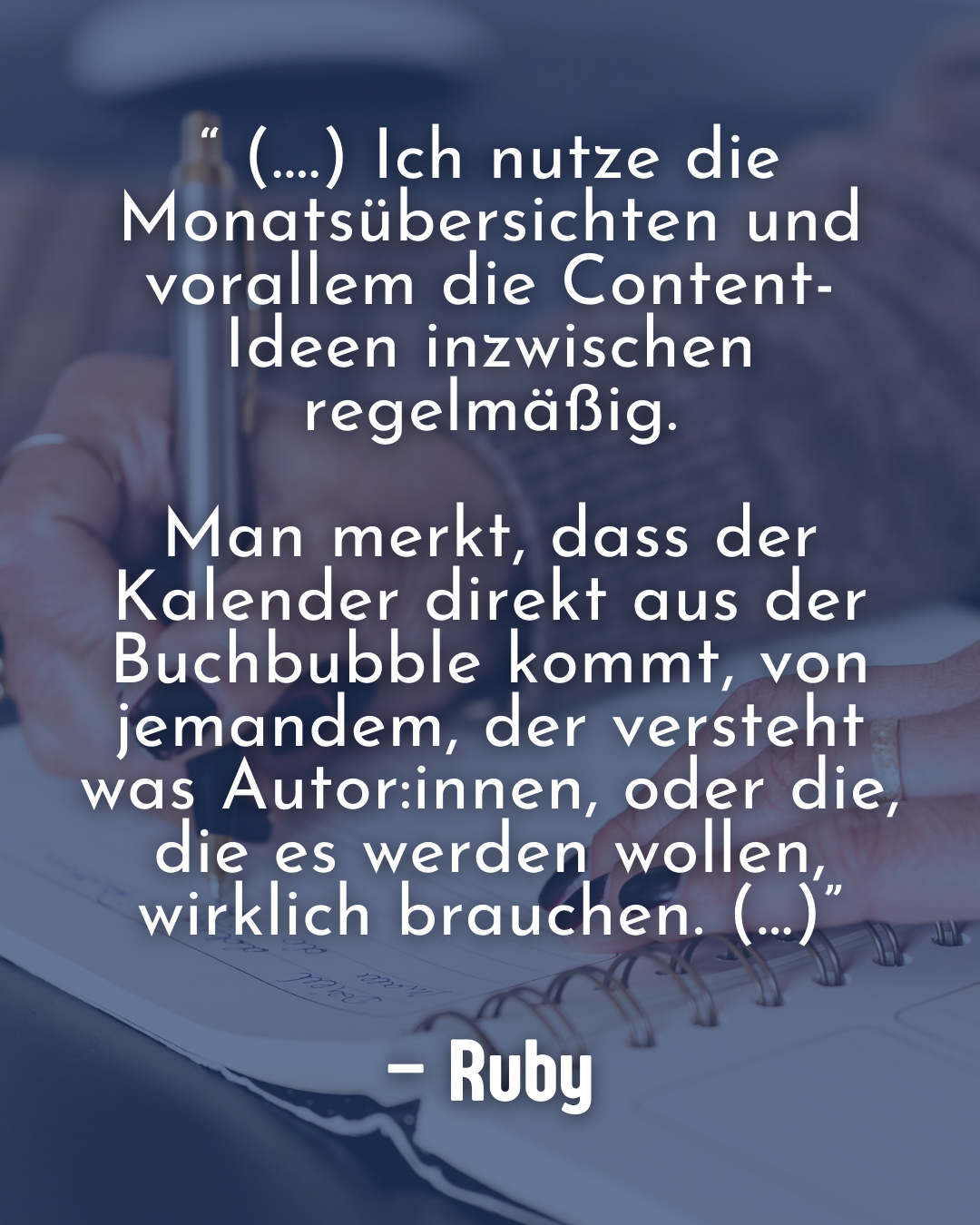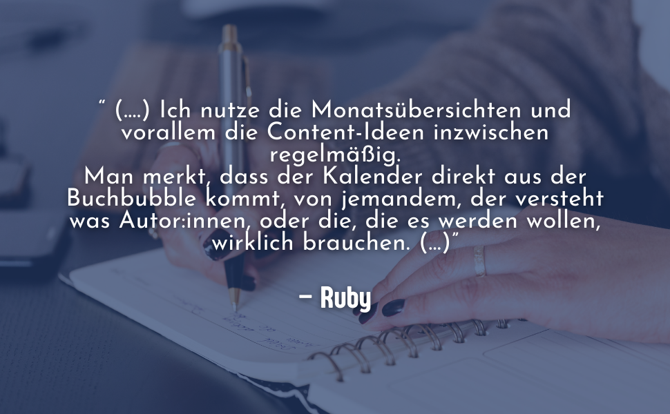 Er gibt dir einen Rahmen für dein Buchjahr. Mit genug Ideen, um im Buchmarketing Zeit zu sparen und genug Freiraum, damit das Schreiben nicht zu kurz kommt.